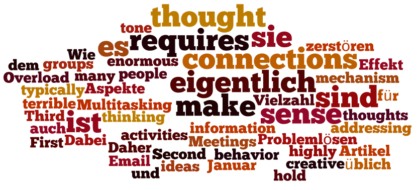 Wie schädlich Multitasking für kreatives Problemlösen ist, wissen wir eigentlich auch, dennoch ist es in vielen Organisationen üblich, sehr viele Email mit CC zu versenden und pro Woche eine Vielzahl von Meetings abzuhalten. Mit dem folgenden Effekt:
