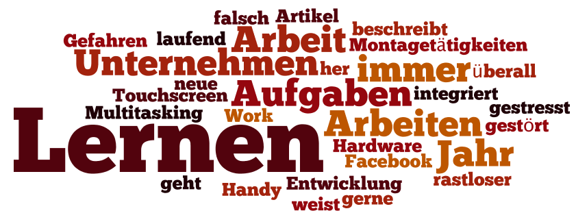 „Ist man in der Arbeit laufend verbunden, ist man auch immer erreichbar und läuft Gefahr, dauernd unterbrochen zu werden. Die mobilen Websites und App-Dienste für die Touchscreen Smartphones, schrumpfen den PC ins Handy, so dass der Arbeitsort überall dabei ist. Dann springt man zwischen verschiedenen Arbeitsprozessen hin- und her wie ein rastloser Tiger, hat ständige geistige Rüstzeiten und ist negativ gestresst. Das ist nicht lernförderlich.“