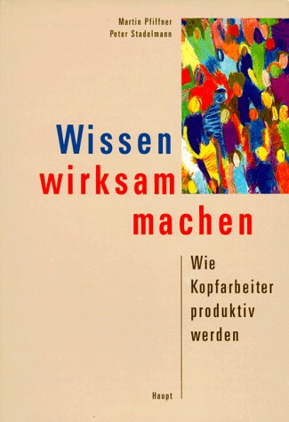 Martin Pfiffner, Peter Stadelmann: Wissen wirksam machen – Wie Kopfarbeiter produktiv werden, Verlag Paul Haupt, 1998. Erhältlich bei Amazon. Ein sehr wichtiges Grundlagenbuch. Eigentlich das erste Buch, dass das Thema Wissensarbeit so ausführlich betrachtet. Einige Kapitel sind etwas zu ausführlich geraten. Dennoch ein sehr empfehlenswertes Buch. |